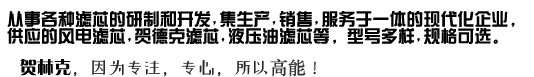 從事各種濾芯的研制和開發,集生產、銷售、服務于一體的現代化企業,產品主要有風電濾芯、賀德克濾芯、齒輪箱濾芯、液壓油濾芯、非標定制濾芯等等。